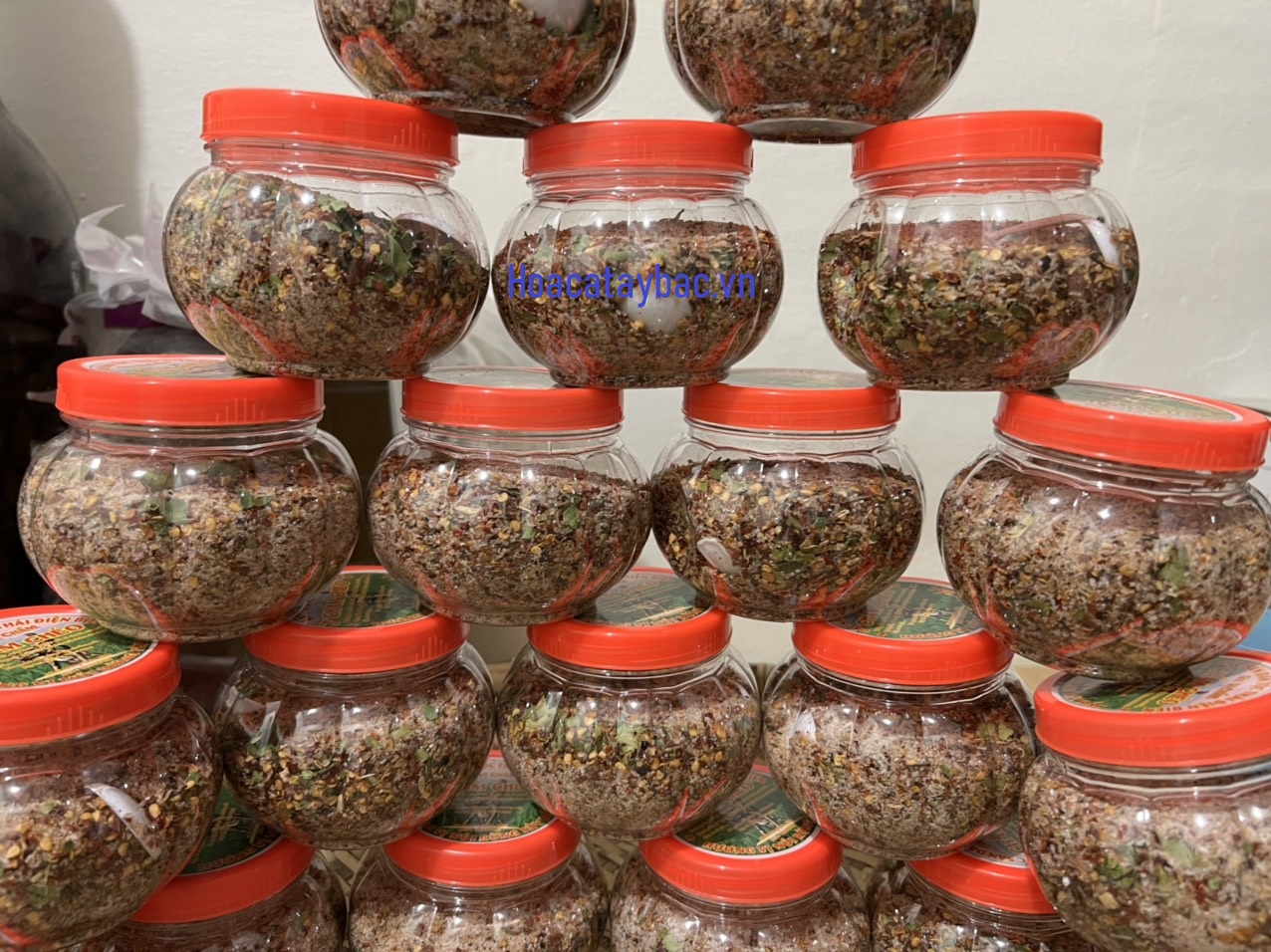👉 Thành phần của chẳm chéo ướt gồm: muối trắng, đường, bột ớt khô, lá chanh khô, mắc khén, hạt dổi...